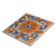 Floral Orange & Blue Mediterranean Flower Ceramic Tile