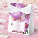 Orchids provide an ornamental backdrop for this wedding favor box. Great for warm weather events, weddings, anniversaries, outdoors, indoors. Use to complement floral wedding event themes, including tropical themes. Easily add your details. Use the template to personalize.