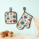 Floral Oven Mitt And Pot Holder Set Retro Folk Art