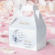 Watercolor Blue Floral We are Over The Moon Baby Shower Thank You Favor Box.