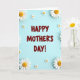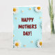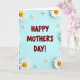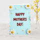 This design shows “HAPPY MOTHER’S DAY!” centered in warm red letters against a wide, pale blue background, with the words spaced to feel open and welcoming ❤️. The strong red-on-blue contrast draws your eye straight to the message, like a gentle hug delivered in color. Around the edges, white-petaled flowers with sunny yellow centers form a loose frame, adding a soft, caring touch without crowding the middle. Larger blooms sit near the corners and are slightly cropped, while smaller blossoms drift along the sides, suggesting a quiet closeness like a bouquet arranged by someone who knows her well 🌼. The lighting is bright and even, making the petals look crisp and the yellow centers textured and warm. The text stays in the open center area, with the floral details kept mostly to the border so the message remains easy to read. The overall palette balances calm blue with cheerful whites and yellows, while the red lettering adds a loving emphasis. Several daisy-like flowers are scattered along the top and bottom edges, with the biggest blooms anchoring the corners on the pale blue field.