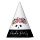 Panda Party at your house? This paper hat features a cute little panda face wearing a floral crown and is ready to party. You can add your name or keep the Panda Party text