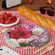 Floral paper plates with roses and hydrangeas
