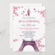 Floral Paris Eiffel Tower 1st Birthday Party Invitation