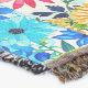 A quality printed throw has its advantages. This is a much finer weave throw than its loopier cousins, and though lighter, it is worth the investment for custom room accessorizing. The back is much prettier than the typical brown, and the fringe on the long sides very vivid, the selvage nicely done. Before photographing, I washed the throw in cold water, delicate, with a thicker woven throw the same size. On tumble dry low, this throw was dry in half the time as the other. This is a very practical quality if you use throws for furniture covers or to wrap up in frequently. The sleekness of the fabric makes it a great layer for accenting or protecting without the feeling of sitting on too much stuff. Perfect for napping or when you feel a light chill coming on. The color printing is beautiful and on this fabric, matched the design and color of my Photoshop image. This is an advantage for blending room fabrics and colors. The fringe on the short sides prints the colors from the design image and therefore varies from the side fringe. I streaked a white fractal line through the plaid pattern to give the illusion of weaving. This printed as crisp as an illusory thread, and put some white in the short side fringe, showing another advantage of print vs loomed- for artistic purposes, line lines, detail, and color integrity can be planned and preserved. My loomed throws have color limitations and more of a needlepoint texture. Print throws reproduce an exact image. The throw felt a little stiff straight out of the package, but this went away in the first delicate wash. Of course I searched the wash water for ink or bleeding and there was none.