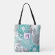 Floral Pattern, Aqua, Teal, Turquoise and Gray Tote Bag