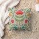 Stylized floral pattern throw pillow, featuring red orange green florals on a light gray background. Artistic style. For any room.