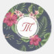 Beautiful floral pattern of Hibiscus on dark background. Sophisticated and feminine round sticker with monogram into white round shape. You can easily change text (font, color, size and position) and image background (size and position) by clicking the customize button. Matching favor bag, luggage, luggage tag and more...