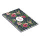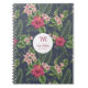 Beautiful floral pattern of Ibiscus on dark background. Sophisticated and feminine spiral notebook with monogram and full name into a round white shape. You can easily change text (font, color, size and position) by clicking the customize button. Don't forget the whole collection of vintage floral patterns.