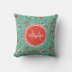 Floral Pattern in Teal and Orange and Red Monogram Throw Pillow