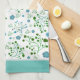 Kitchen towel with floral pattern on white background