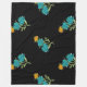 Floral Pattern Turquoise Coral Green on Black Fleece Blanket