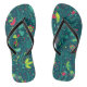 Floral pattern with cartoon birds flip flops