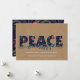 Simple and modern, this corporate holiday card features floral and evergreen branch design letters that spell PEACE on a kraft paper look background with an area you can easily add your information. The back of the card has matching floral and evergreen sprigs on dark blue.