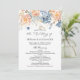 This design features a watercolor illustration of pale peach and blue blush flowers with golden effect confetti on the top of the card.