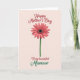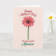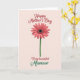 Designed with a simple floral focus, the card centers a large daisy-like bloom against a soft peachy pink background. Coral-pink petals spread outward with faint texture, circling a very dark center dotted with tiny amber specks that feel like little sparks of affection ❤️. A slim green stem runs straight down from the flower, giving the layout a calm, steady balance. Near the top, “Happy Mother’s Day” sits above the bloom in deep crimson lettering with a slightly grainy look. Lower on the card, “To my” appears in the same red, followed by “beautiful” in matching red lettering that feels gentle and affectionate. The word “Mamaw” stands out in rich green, echoing the stem and adding a friendly, close-to-home touch 🌼. Soft light falls across the petals and the lettering, and the flower’s round dark center is framed by coral petals on the warm pastel background.