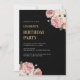 Floral Peonies and Roses on Black Birthday Party Invitation