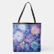 This shoulder tote bag is shown with a lovely blue multi floral peonies print design.