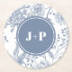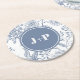 Floral Periwinkle Blue Monogram Wedding Round Paper Coaster