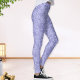 Elegant periwinkle blueish purple leggings with a floral pattern.
