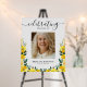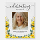 Elegant celebration of life funeral foam board featuring a photo of the person who is being remembered, rustic garden yellow watercolor florals, the sympathy title "celebrating the life of", their name, and birth/death dates.