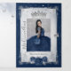Floral Photo Silver and Navy Blue Quinceanera Tri-Fold Invitation