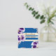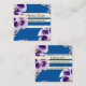 Elegant and stylish business card. White stripes, blue background and floral photo pattern. Customizable.