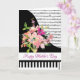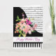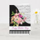 cute piano with sheet music, edit greeting, and your own accent piece (floral, etc.)