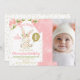 Floral Pink and Gold Photo Bunny 1st Birthday Invitation