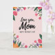 Designed with a pale blush-pink background, this card centers a loving note that feels like a gentle hug ❤️. In the middle, the words “Love you, Mom” appear in flowing black lettering, giving the message a soft, affectionate tone. Just beneath it, “HAPPY MOTHER’S DAY” is placed in uppercase letters in a simple dark font, aligned neatly to anchor the layout. Each corner is filled with decorative flowers and leafy stems that curl inward, as if surrounding the words with care. The blossoms mix bright pink, coral, and deep purple shades, paired with rich green leaves that add a fresh spring feeling 🌼. Subtle shading on the petals and foliage adds depth, like you could almost feel the velvety layers and see the tender attention in every detail. The overall scene feels calm and close, with the floral frame drawing your eyes toward the message at the center. In all four corners, clusters of stylized blooms and emerald leaves form a balanced border against the soft pink field.