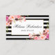 Elegant Watercolor Pink Blush Floral with Black & White Stripes Hair Stylist Appointment Card