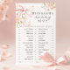 Floral pink bow "Who knows mommy best" baby shower game for a memorable party.