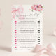 Floral pink bow "Guess Who?" baby shower game for a memorable party.