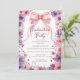 Floral Pink Bow Coquette Photo Graduation Party Invitation
