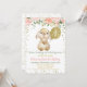 Floral Pink Gold Balloon Fluffy Bunny 1st Birthday Invitation