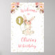 Floral Pink Gold Bunny 1st Birthday Welcome Poster