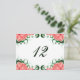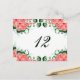 © Sunny Mars Designs - Floral Hibiscus: Pink on Custom White Horizontal Wedding Table Number Cards - Customizable, modern, elegant, classy, trendy, chic 5.6" x 4.25" wedding reception table number cards with a beautiful stylish, pink swirly floral tropical hibiscus design.