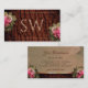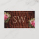 Floral Pink Roses Rustic Wood Tree Bark Initials Business Card
