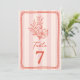 Red line art floral botanical illustration over pink stripe background with red text and hand drawn frame.