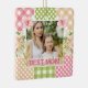 This vibrant “Best Mom” design features a warm mother‑and‑child photo framed by a colourful floral plaid collage. The patchwork border blends gingham, polka dots, and soft pattern blocks in pink, green, orange, and white, accented with illustrated hibiscus flowers and golden botanical elements. The mix of textures creates a bright, handcrafted feel with a joyful, heartfelt mood. Perfect for Mother’s Day, birthdays, or celebrating a truly special mum, this design pairs sentiment with bold, modern colour and floral charm.