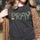 Celebrate your faith with vibrant style in this women's tee. Featuring the word "Pray" crafted from bright, colorful flowers in shades of pink, yellow, and blue, this design is both uplifting and eye-catching. A delicate yellow butterfly accent adds a touch of grace and whimsy. Perfect for expressing your faith in a fun and floral way, it's ideal for casual wear or as a thoughtful gift for someone special.