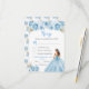 This Quinceanera rsvp enclosure card features a beautiful princess in a blue ball gown with floral arrangements. This is perfect for a birthday party, sweet sixteen or quinceanera.
