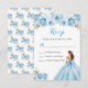This rsvp enclosure card features a beautiful princess in a blue ball gown with floral arrangements. This is perfect for a birthday party, sweet sixteen or quinceanera.