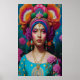 An image of a floral princess with pink makeup and head wrap. This is an AI generated artwork with a floral theme.
