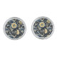 Cufflinks shown in a silver tone rhodium plated round shape with a lovely floral print.