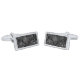 Cufflinks shown in a silver tone rhodium plated rectangle shape with a lovely floral print.