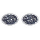 Cufflinks shown in a silver tone rhodium plate with a lovely deep blue color floral print.