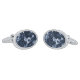 Cufflinks shown in a silver tone rhodium plate with a lovely deep blue color floral print.