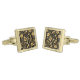 Cufflinks shown in a gold-plated square shape with a lovely floral print.