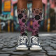 Floral Print Pop Art Pattern Cute Girly Boho Grey Socks